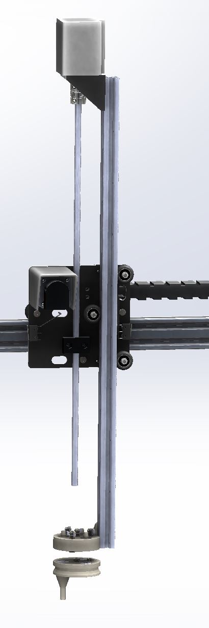 Partially screw 2 8mm M5 screws and tee nuts into the motor mounting bracket. Route the Stepper Motor’s cable through the bracket and attach the motor to the bracket with 4 8mm M3 screws.